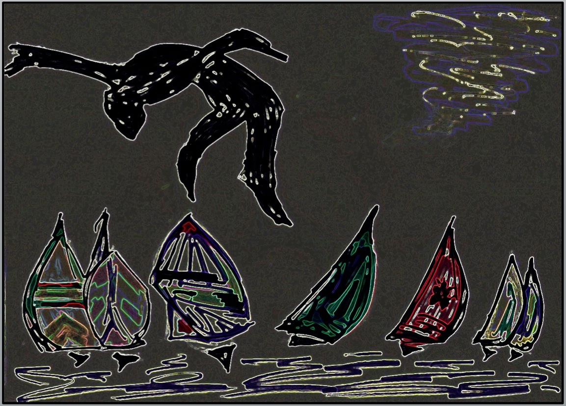 Au dessus de lui, un ciel bleu comme ses rêves de petit garçon au matin de juillet. En dessous, une eau bleue comme la profonde mélancolie d’outre-mer, où subsiste un lointain parent. Entre les deux, celui de ses yeux, clair comme deux « o » qui se refléteraient dans l’air. L’air du temps ou l’air du vent. L’air de rien, celui d’avant. Un peu plus loin, quelques concurrents régataient bord à bord. Trimarans et catamarans allaient gaillardement de l’avant. Ils devançaient de plusieurs milles la flotte des monocoques lancée à leur poursuite. Mais lui survolait les débats de toute sa classe. Il était bien au dessus du lot. Son sens du vent, sa jeunesse et son audace frisant parfois l’inconscience lui avaient toujours permis de passer là où personne ne s’aventurait.