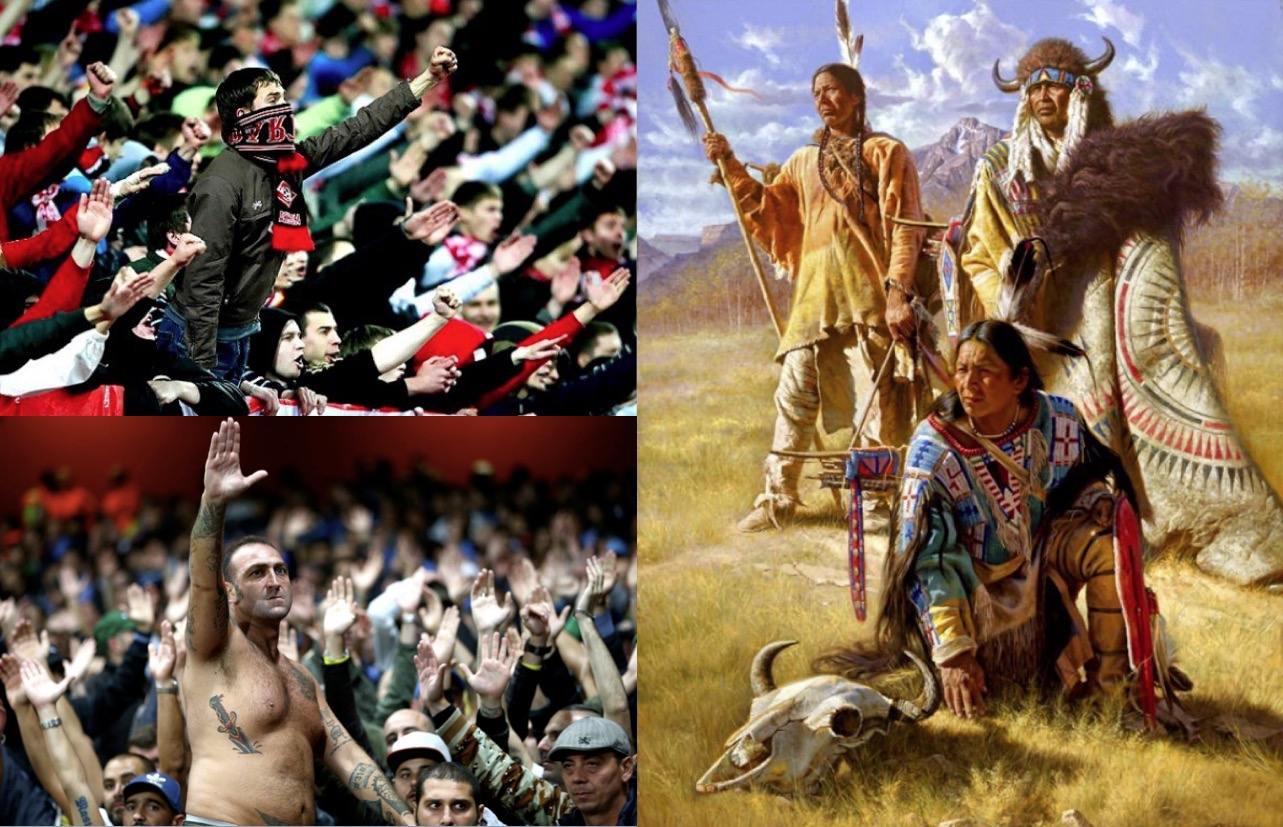 Finally, I raise my eyes to heaven, toward horizons ignored by low forehead skinheads, or by the new ‘‘casuals’’, with their undetectable sportswear look and their more respectable scalp. My thoughts are so much less hugging the lawn. As a poisoned arrow, I shoot this question to the very pale faces who feel strong only when they are a lot. Because of tarnishing the name of their forefathers by linking it to mediocre cowardly racists, wouldn’t the memory of the braves riding the immense prairies be one time too many profaned by these odious cowards only interested in artificial lawns ?
