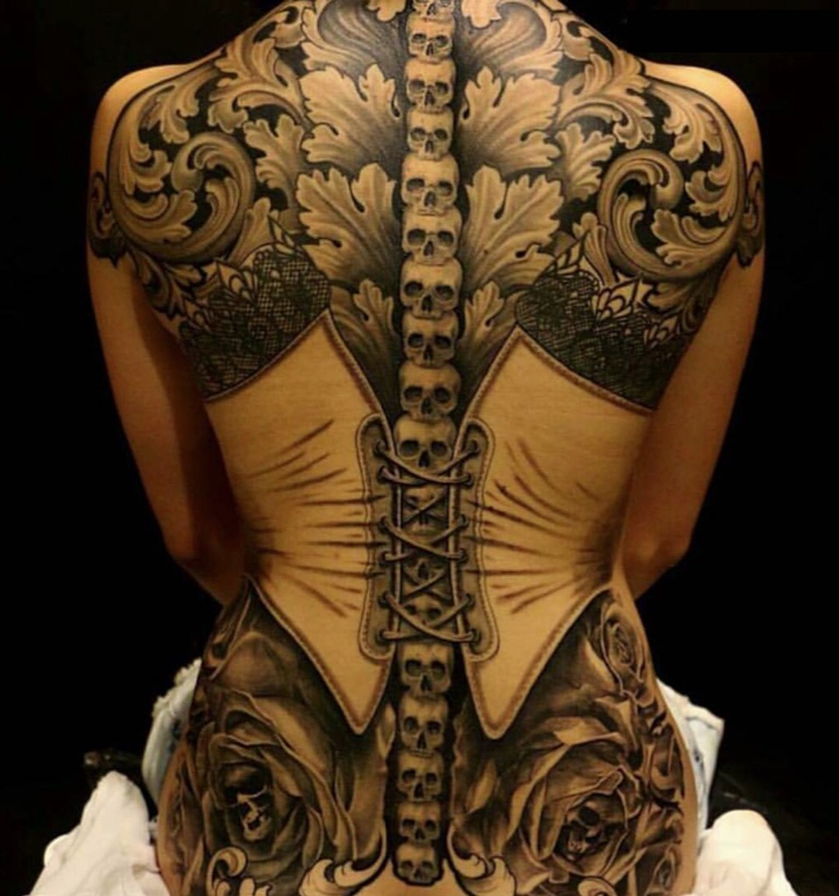 Do you get tired of lacing your corset every morning and loosen it every night? Are you weary of carefully putting your lace blouse on, and then adjust it ten times a day? Opte for a radical solution ; choose the full tattoo! If you are sure of yourself and trust in a constant attitude about your dress code, this should not present any serious problem. Otherwise, just go back to the old ordinary way, and get dressed like all common persons!