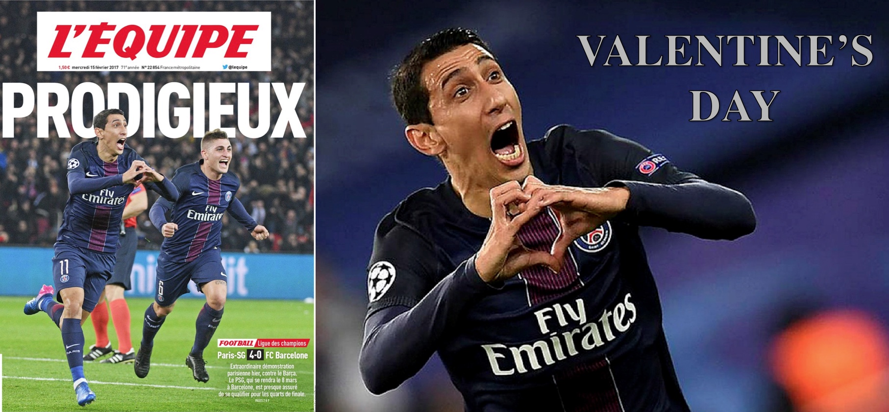 15 février 201715 février 2017 Jour de Fête – Jour de Foot LA SAINT VALENTIN, TENDANCE PSG… Par le bien nommé ANGEL DI MARIA…