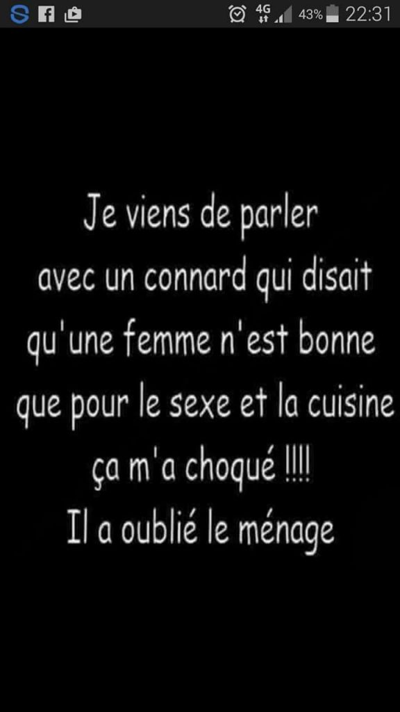 Voici, ci-dessus, le message qu’un imbécile, ou un inconscient… ou les deux à la fois, a jugé bon de m’envoyer hier soir, en l’honneur de la journée internationale des droits de la femme. Ma réponse est simple. Je lui accorde un sursis de vingt-quatre heures maximum pour se confondre en des excuses aussi plates qu’une limande qui serait passée sous un rouleau-compresseur. Pardon pour cette vision déchirante d’un monde animal lui aussi trop souvent martyrisé (surtout s’il s’agit d’une limande femelle, vivant quotidiennement sous la contrainte et l’humiliation de cette expression navrante : «plate comme une limande» !).