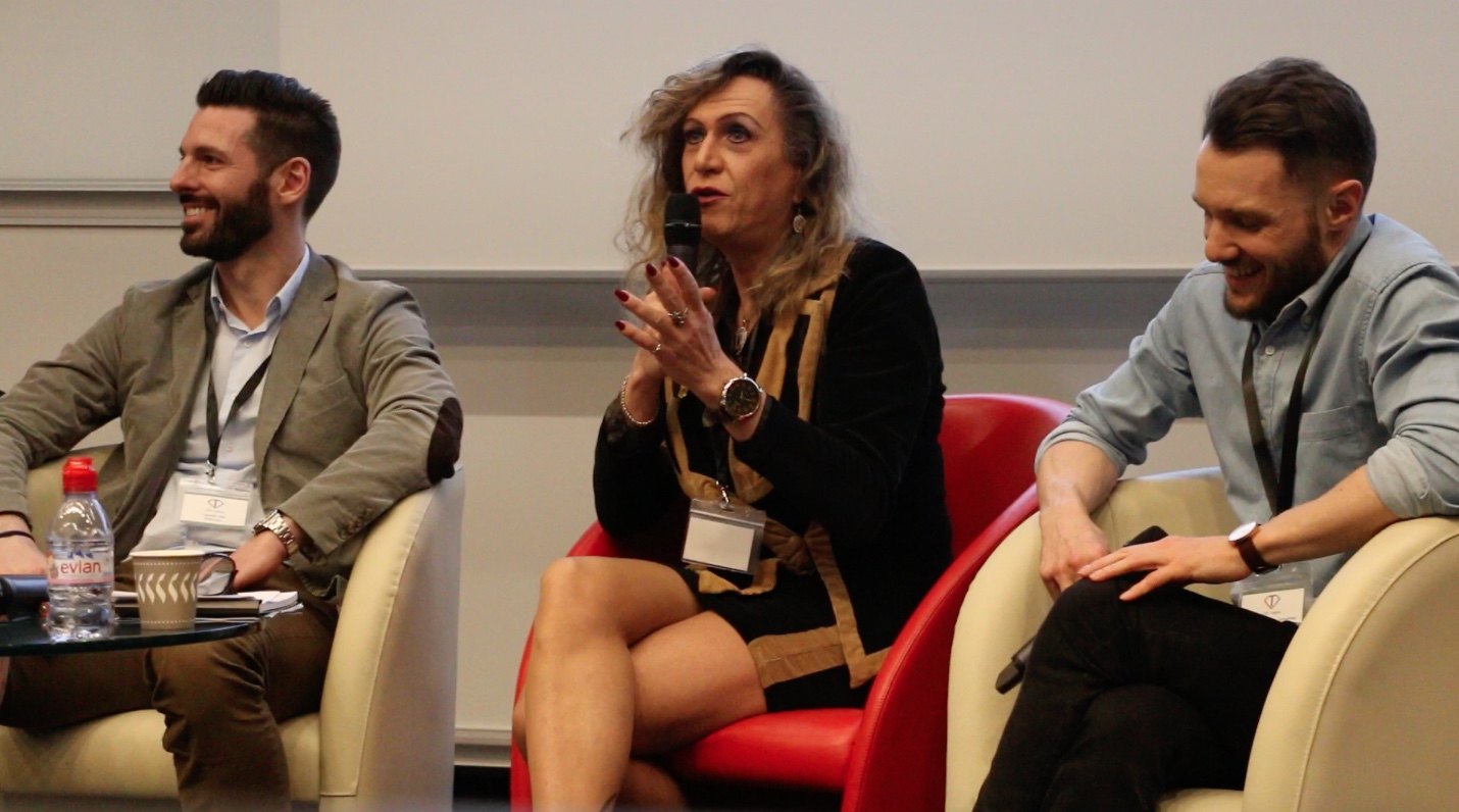 De 17h00 à 18h00, la conférence de clôture, dont le thème était l’activisme LGBT, a permis l’intervention de deux autres personnalités transgenres : Stéphanie Nicot, présidente de la fédération LGBT depuis 2014 (également co-fondatrice de Transaid, devenue l’Association Nationale Transgenre) et de Chloé Avrillon, experte en informatique travaillant à la direction générale de l’Aviation Civile et fondatrice de l’association LGBT Rainbow Brest.