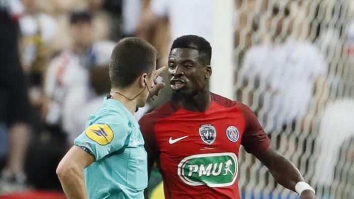 Un tournant qui faillit provoquer la sortie de route des Parigots, faisant leur tête de veau après ce camouflet sans conséquence à la marque, mais perçu comme une gifle. Le remuant Pépé eût droit à quelques poussettes et intimidations illicites. Résultat : deux cartons jaunes parisiens. Angel Di Maria écopa du premier à la 39ème minute et Serge Aurier du second dans les arrêts de jeu (45+2). Le beau Serge, façon de parler, s’était rendu coupable d’un tacle à retardement sur son compatriote ivoirien et meilleur adversaire du jour : Nicolas Pépé. En de telles circonstances, à quelques secondes de la mi-temps, n’importe quel joueur normalement constitué du cervelet aurait fait profil bas ou amende honorable. Pas Serge Aurier ! Prix Nobel de diplomatie et professeur ès courtoisie urbaine, il a claqué un fusible et s’est précipité vers l’arbitre d’un coup d’un seul pour lui hurler sa façon de penser en des termes pas vraiment baudelairiens. Plusieurs Angevins et Parisiens (il n’y a qu’à voir la tête de Blaise Matuidi qui s’interposa pour calmer immédiatement son équipier) crurent bien que l’arrière du PSG vivait ses dernières secondes de la finale sur la pelouse. Mais Benoît Bastien ne fit pas ce que 80 % des hommes en noir aurait fait à sa place : transformer le jaune très orangé d’Aurier en rouge synonyme d’expulsion et de seconde mi-temps jouée à dix côté parisien. Ce fut le deuxième tournant du match.