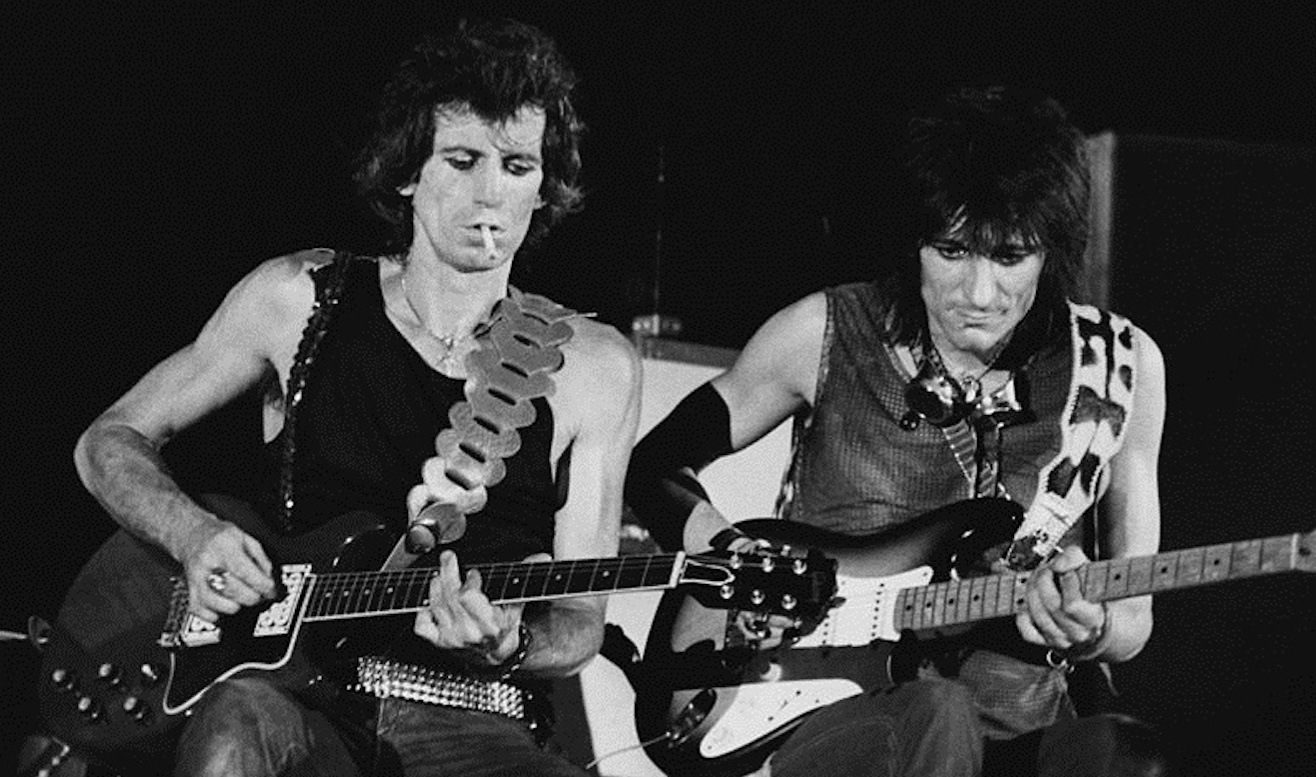 Né le 1er juin 1947 à Hillingdon, dans le Middlesex (of course), il a toujours eu des fréquentations musicales irréprochables. Avant les Stones, il fut bassiste du Jeff Beck Group, puis guitariste des Faces, avec Rod Stewart au chant. Il zona également un temps aux côtés de David Bowie. À l’instar de Ringo pour les Beatles, Ron Wood a toujours eu un don pour jouer un rôle de ciment relationnel au sein des formations qu’il a intégrées. Il développa ces good vibrations en triangle avec Keith Richards et Mick Jagger, au point de les rabibocher après la première séparation du groupe. Il y avait une réelle connivence musicale avec Keith. Ce dernier a d’ailleurs inventé un très joli terme pour évoquer leur complicité de guitaristes et leur technique particulière dans laquelle s’entremêlent guitare solo et guitare rythmique sans que l’on puisse identifier à coup sûr qui joue quoi : « The ancient art of weaving ». Autrement dit, l’art ancien du tissage.