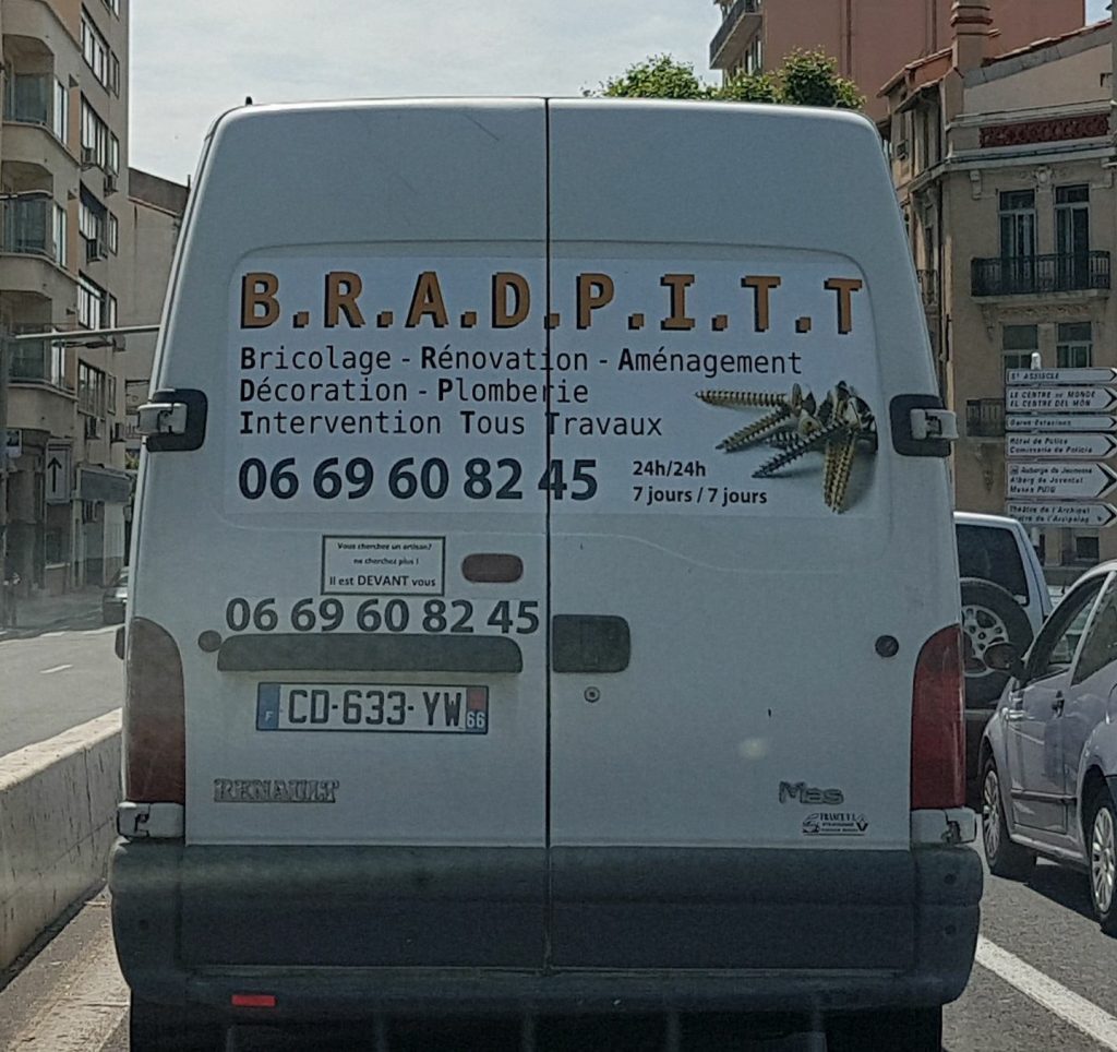 Certaines rêvaient d’obtenir le numéro de téléphone mobile de Brad Pitt. Grâce à un artisan perpignanais, c’est désormais tout à fait possible. C’est même devenu aussi simple qu’un coup de fil au service des renseignements ou un coup d’œil dans l’annuaire ! En créant son entreprise, et surtout en la baptisant malicieusement avec cet acronyme bien particulier, Anthony Lecamus s’est assuré une publicité maximale et une promotion de tous les instants dès que ses véhicules siglés prennent la route.