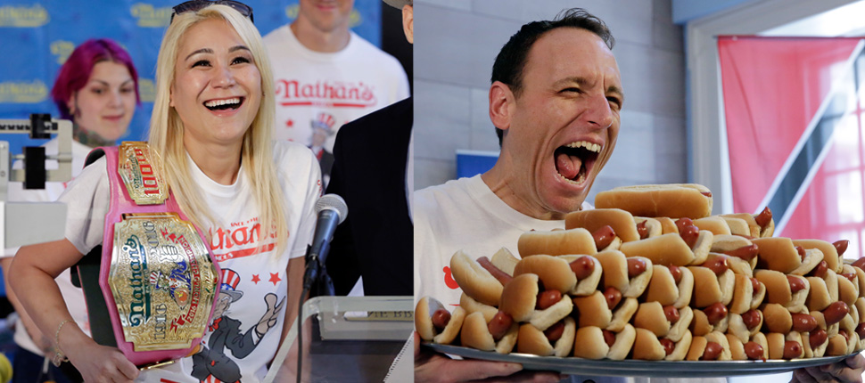 Miki Sudo et Joey « Jaws » Chestnut, les grands vainqueurs du Nathan’s Hot Dog Eating Contest, édition 2017.