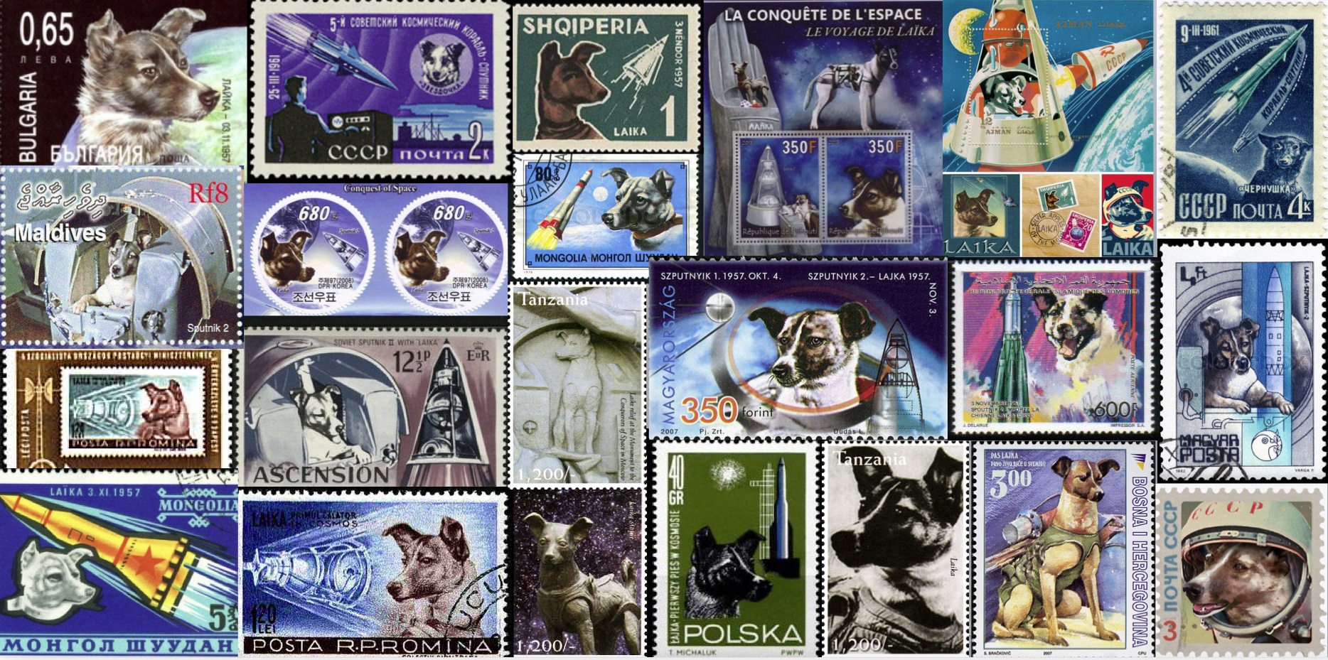 Sur les photos de propagande, car cela en fait plus que jamais partie, le rendu semble sympa. À vivre au quotidien et en accéléré c’est – déjà – un enfer. Le jour du grand départ est avancé du 7 au 3 novembre 1957. Laïka est placée dans le satellite dès le 31 octobre, soit trois jours avant le décollage, pour des raisons aussi obscures que les arcanes du Kremlin. À Baîkonour, en plein milieu du Kazakhstan, il fait un temps à ne pas mettre un chien de traineau dehors. On bricole un tuyau relié à un radiateur pour maintenir la cabine au chaud et deux assistants sont chargés d’alimenter et de surveiller la chienne en permanence. Son pelage est badigeonné avec une solution faiblement alcolisée. On enduit d’iode les parties du corps où sont implantées les électrodes qui controleront ses fonctions corporelles. À 2H30, le lanceur R-7 propulse enfin la fusée dans l’espace. Laïka, d’habitude si calme, s’affole et s’agite anormalement. Durant la phase d’accélèration maximale, les battements de son petit cœur passent de 103 à 240 pulsations par minute. Le monde apprend alors qu’un chien est le tout premier pionnier de la conquête de l’espace et qu’il entame d’incroyables rotations autour de la Terre. C’est l’événement inter-sidérant de l’ère moderne. Plus près des étoiles que quiconque avant elle, Laïka devient une superstar supranaturelle. Ses photos font le tour de la terre aussi rapidement que son Spoutnik 2. Des pièces, des timbres, des objets diverses sont frappés à son effigie.