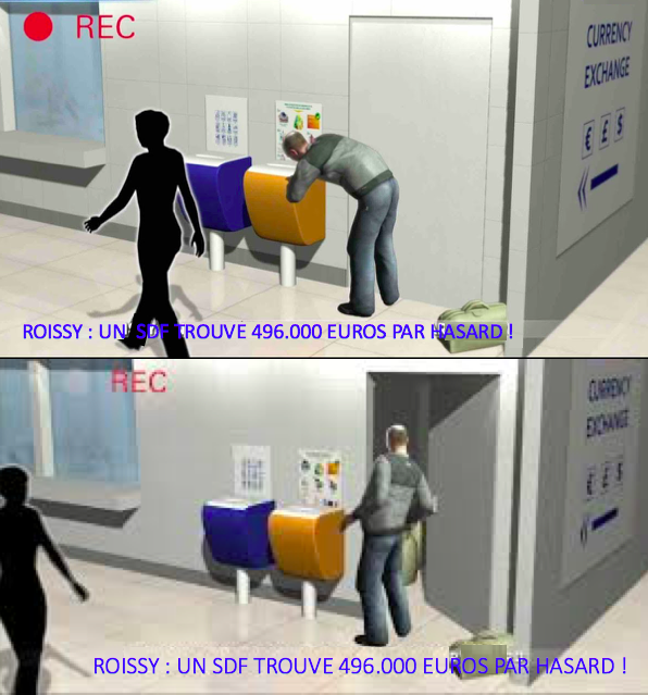 Le 8 décembre 2017, dans le Terminal 2F de l’aéroport de Roissy, c’est Noël avant l’heure pour un SDF qui fouille les poubelles et traîne savate sur le béton gris. Alors qu’il triture détritus et conteneur, il avise une porte métallique aussi triste qu’Orly le dimanche sous la pluie, mais s’ouvrant gentiment, comme par enchantement, sur un local inconnu. L’homme y jette un œil puis deux. Il a bien du mal à récupérer cette paire de prunelles, à laquelle il tient beaucoup, ainsi que son calme, sérieusement mis à mal par une incroyable découverte : des gros sacs de billets de banque pleins à craquer !