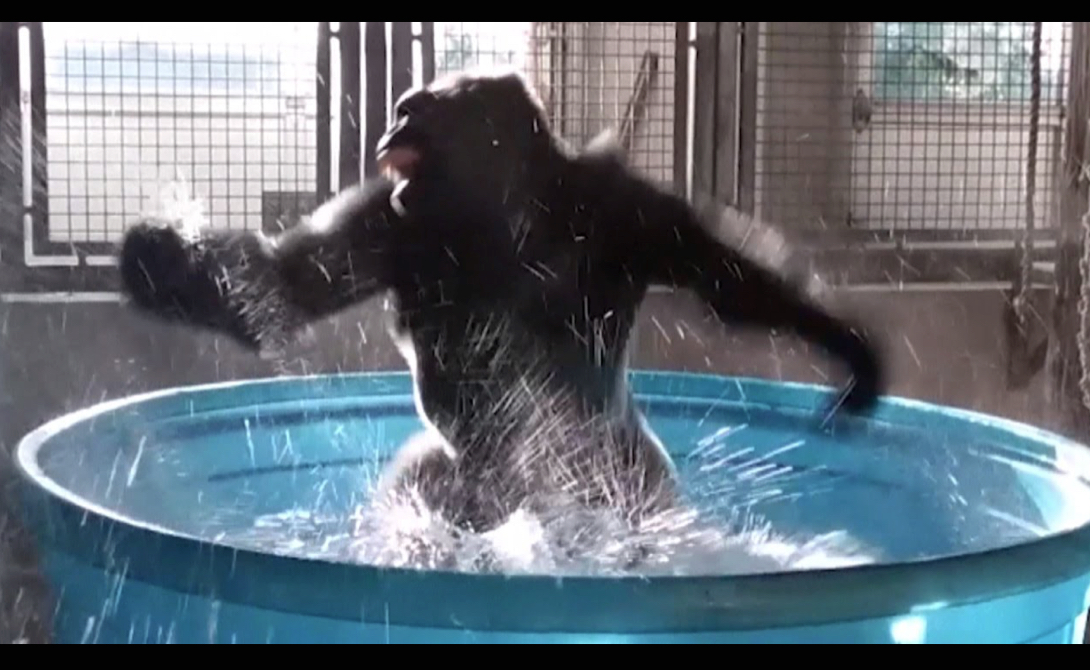 Certains chantent sous la douche, lui danse dans son bain. Zola est un magnifique mâle de 14 ans, pensionnaire du zoo de Dallas, aux USA. C’est un gorille des plaines de l’Ouest, une sous-espèce qui demeure, comme toutes les autres, en danger d’extinction à cause du braconnage et de la destruction de leur habitat naturel (Angola, Cameroun, Congo, Gabon, Guinée équatoriale, République centrafricaine). Au cours des vingt dernières années, leur population a diminué de moitié. Si l’homme est un prédateur pour l’homme, il est devenu un exterminateur pour les grands singes. Et particulièrement pour les gorilles qui sont, après les bonobos et les chimpanzés, les êtres vivants les plus proches de nous du point de vue génétique : 98 % à 99 % de leur ADN est identique à l’ADN humain.