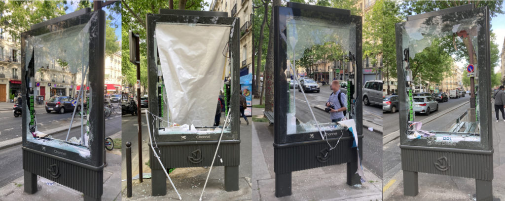 Ce lundi 2 mai 2022, on a pu constater les dégâts causés par le défilé de la veille, censé commémorer la journée internationale des travailleurs et leurs luttes pour une vie meilleure. Le parcours des manifestants ressemblait davantage à un parcours du combattant entre pavés, éclats de verre et débris en tous genres, jonchant les trottoirs et la chaussée.