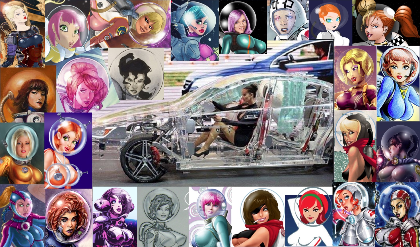 J’eus un peu de mal à me remettre au travail et reprendre le fil de mes idées. La Transmobile hantait mon cortex. Elle passait d’un hémisphère cérébral à l’autre en faisant crisser ses pneus sur mes synapses. Un instant, j’imaginai un grand défilé transgenre sur les Champs Élysées, avec un cortège de transmobiles surréalistes, des Barbarella aux escarpins de verre, des Rocket Girls aux casques translucides… Une transmobilite aigüe lobait mon cerveau et me perforait les temporaux. Je voyais même Samantha allongée sur le capot ! Bref, je m’avais plus les idées vraiment claires pour me remettre au boulot.