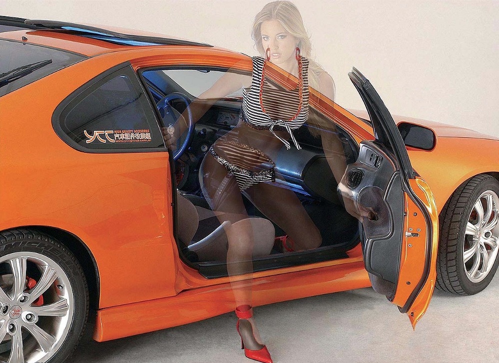 J’allumai une menthol et regardai à nouveau la photographie. En mini moulante et talons aiguille, nul doute que ce type de véhicule vous donne un genre ! Du coup, y’a plutôt intérêt à avoir une conduite irréprochable. Et une carrosserie hyper-briquée. Soudain, l’écran de mon téléphone mobile s’allume. C’est à nouveau Claire : « Re-salut Brigitte ! Ne t’inquiète pas, je serai brève ; c’est un appel éclair ! Tu sais, pour la transmobile, j’ai trouvé la tenue idéale : je vais m’habiller en trans-invisible ! C’est une idée géniale, non ? Qu’est-ce que tu en dis ? »