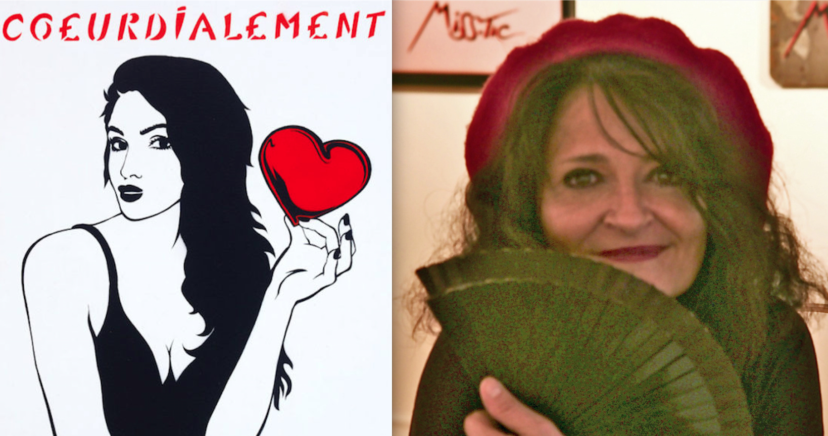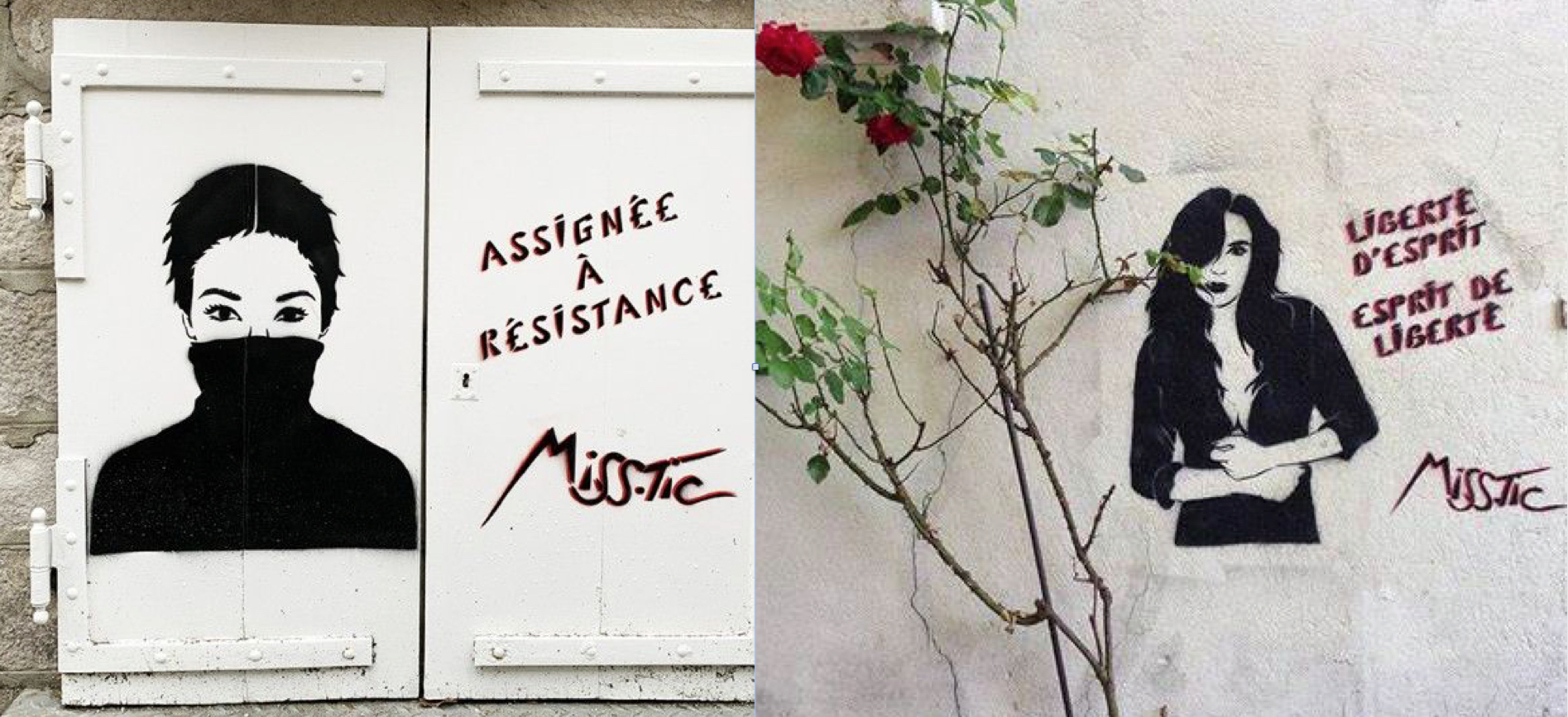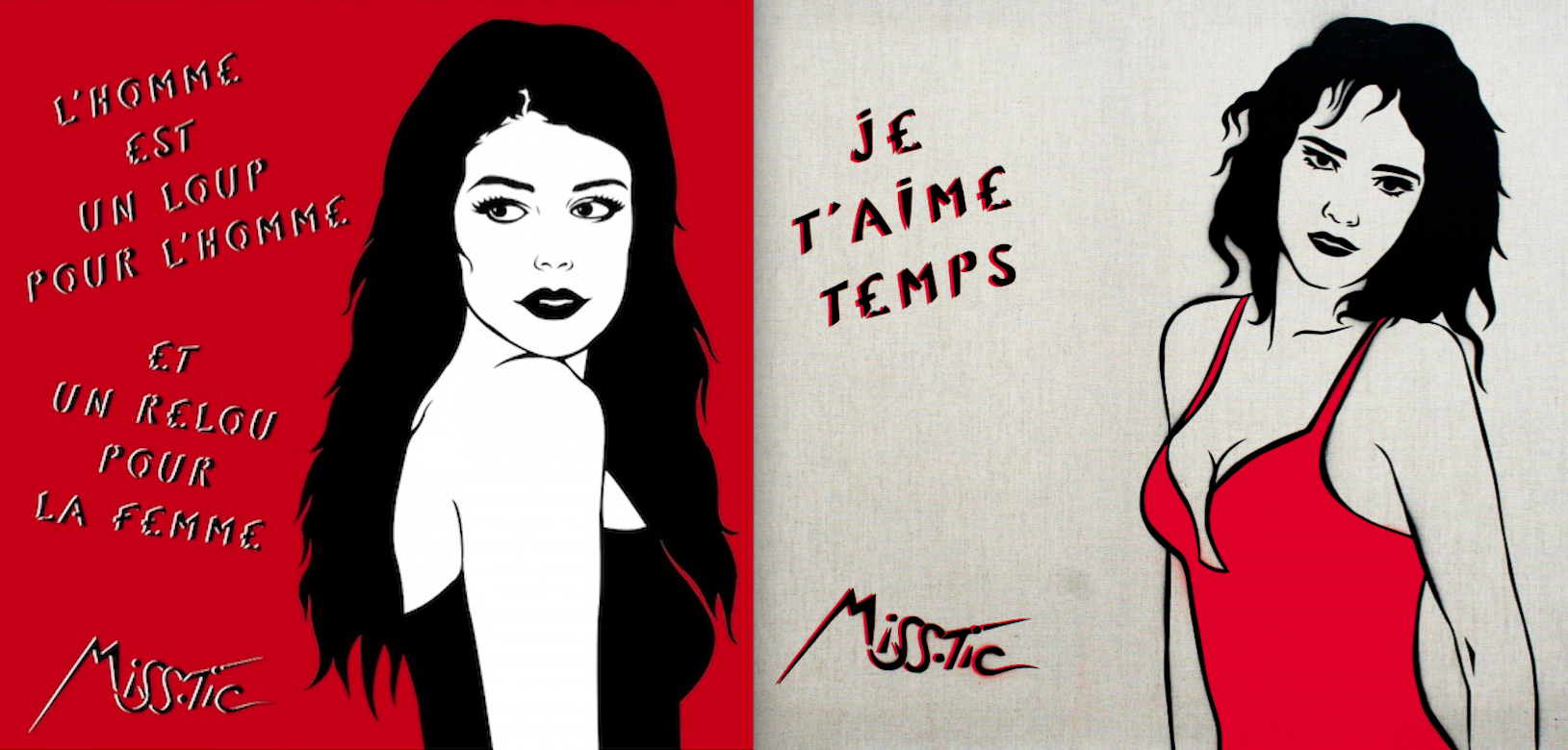 L’article édité à propos de Miss.Tic, ce dernier week-end, a suscité un grand intérêt et des réactions que l’on pourrait résumer par la phrase « On en veut encore ! ». Avec grand plaisir, une série supplémentaire de ses œuvres est donc présentée ici. Extraites de son atelier, d’expositions ou photographiées sur le vif, ces créations sont toujours aussi originales, dans tous les sens du terme. Concernant celles capturées sur les murs ou dans les rues, on peut s’apercevoir que l’artiste ne choisissait pas le cadre au hasard. Souvent, pour ne pas dire toujours, ce fond répond à la forme, tels “l’esprit de liberté“ sur un mur blanc bordé d’un rosier, “l’assignée à résistance” partagée entre deux volets clos, la “femme qu’on diffame” près d’une entrée d’immeuble, “C’est la vie, ça va passer” devant une porte métallique aussi triste que le ciment et les pierres grises la bordant. Il y a ainsi une correspondance évidente entre texte, graphisme et décor. L’ensemble décuple la portée des messages et des sentiments qu’il exprime. Une démarche typiquement mystique, dans le sens premier de l’adjectif : relatif au mystère. Longue vie à celui de l’artiste.