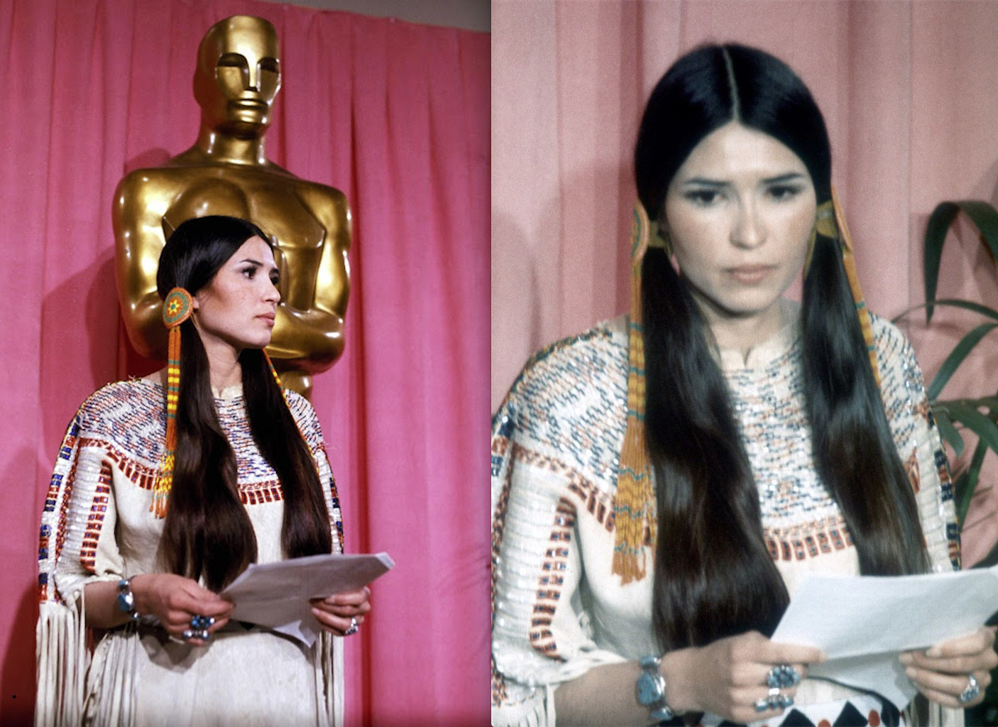 En 1973, elle avait à peine 26 ans lorsqu’elle était venue lire une déclaration de Marlon Brando lors de la cérémonie des Oscars à Hollywood. Le monstre sacré du cinéma américain, qui avait remporté l’Oscar du meilleur acteur pour son interprétation de Don Vito Corleone, dans le film Le Parrain, réalisé par Francis Ford Coppola, n’avait pas daigné se déplacer. Pire, il avait décidé de refuser son trophée en signe de protestation contre le traitement des Amérindiens par Hollywood. La jeune Sacheen Littlefeather, d’origine apache et yaqui, fut son émissaire. Elle était venue en paix, expliquer la motivation profonde de l’acteur. Elle fut crucifiée sur place par les producteurs et bannie des studios américains…