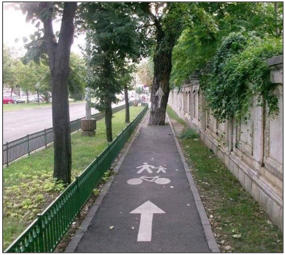 13 novembre 202213 novembre 2022 ONDE VERTE PISTE RECYCLABLE …Cet arbre mériterait d’être verbalisé sur le champ !Il emprunte une voie strictement réservée aux piétons et aux vélos !En plus, il tente de passer inaperçu en se peignant une flèche sur le tronc !