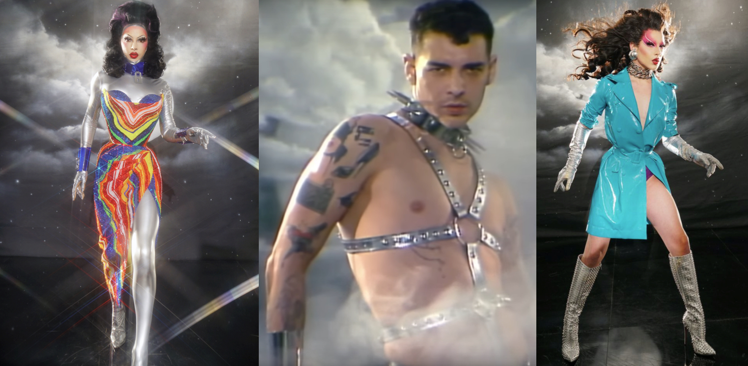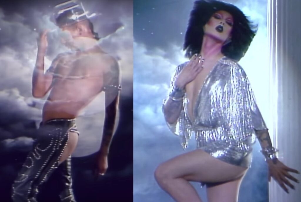 Très portée sur le glamour vintage, mais également férue de mode fétichiste à forte tendance sado-masochiste, Violet Chachki livre dans ce clip une double interprétation masculine / féminine qui met en exergue son identité non-binaire (ou genderqueer), autrement dit sa volonté de ne s’identifier ni strictement homme, ni strictement femme, mais plutôt de voguer entre les deux, avec toutes les variations possibles et imaginables. Esthétiquement et musicalement, cette version moderne de “Fade to Grey” mêle plusieurs impressions qui n’en façonnent qu’une seule. Nuit de pleine lune en arrière plan, colonnes d’albâtre, socles de marbre, obscurités nocturnes, pâleurs astrales, nuées et brumes éthérées… le décor est planté. « Bonsoir… Je m’appelle Violet… Hou la la… » prévient d’entrée, façon diva, l’apparition corsetée en noir et lamé. Le relai garçon, entre éphèbe gréco-romain et jeune mâle sm, convoque pagne minimal, cuir clouté, lanières rivetées et colliers hérissés. Il est aussitôt cntrebalancé par le retour de la Vénus en latex luisant et couleurs vives, contraste saisissant, renforcé par un maquillage lumineux et saisissant. Les extrêmes se touchent. Tout s’oppose et se répond. Tout s’assemble mais ne se ressemble. Tout ensemble se rassemble. Les yeux s’allument et le cerveau s’embrume. Regard laser pour elle, étonnamment présent, qui transperce le mystère obscur. Regard faussement absent pour lui, qui cherche au loin la clef de son énigme.…