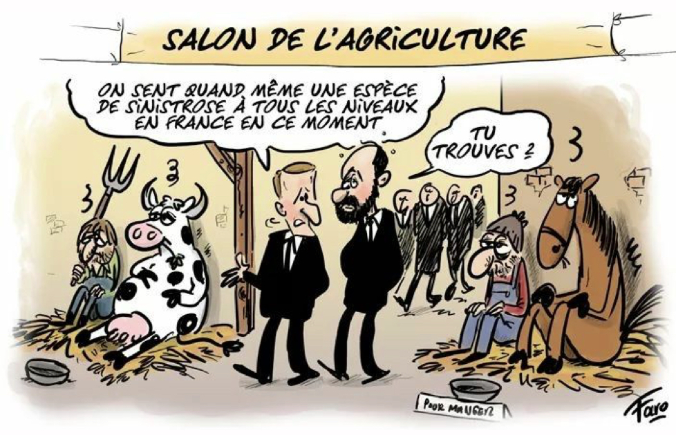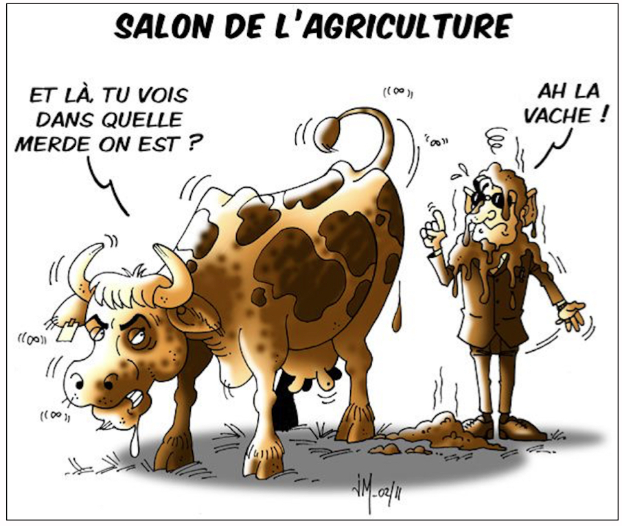 Ce dimanche 5 mars, le salon de l’agriculture 2023 a fermé ses portes en fin d’après-midi. Exit le choc des mondes rural et citadin. Sans battre de record, l’événement, qui se tient sur neuf journées consécutives, a enregistré une belle affluence : 615.204 visiteurs, 40.000 professionnels et délégations françaises et internationales, 3500 journalistes accrédités… Mais, en cette période de transhumance humaine propice au mélange des genres, la quantité est-elle synonyme de qualité ? Et à une meilleure connaissance des uns et des autres grâce à ce rapprochement particulier ? À en croire les dessins humoristique qui ont jalonné cette célébration annuelle, rien n’est moins sûr…