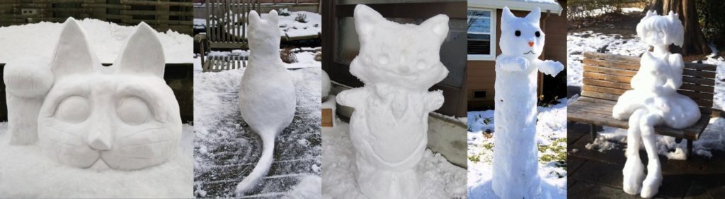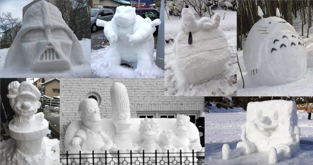 Leur existence éphémère ne leur octroie que plus de valeur. Leur charme opère et pousse les sculpteurs du précaire à multiplier les formes et les évocations. Personnages issus du cinéma, de la bande dessinée, des jeux vidéo… leurs doubles cristallisés font irruption dans la réalité, qu’ils transforment avec espièglerie. Dans les villes, dans les campagnes, ils s’invitent au gré de nos inspirations, de nos improvisations. Ils prennent place et attendent. Ils ont la sagesse du bouddha. Ils ont la patience des chats.