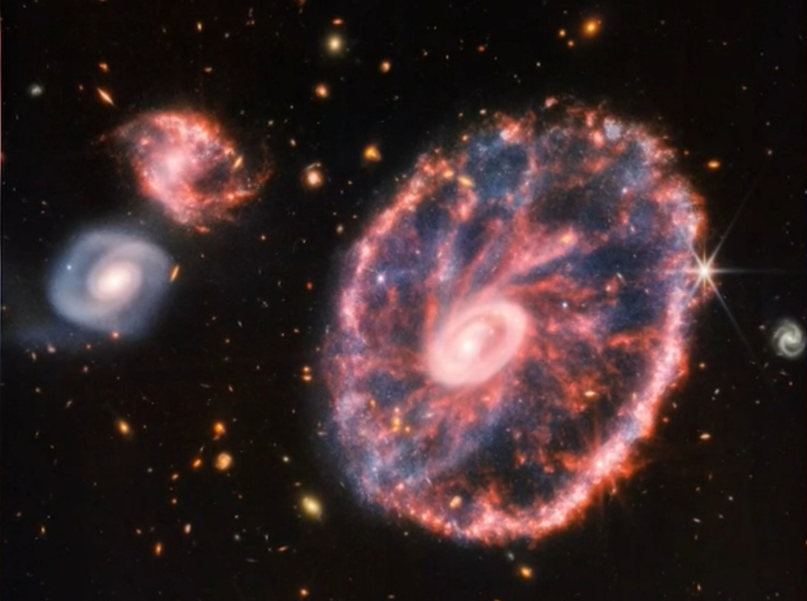 La seconde image extraordinaire, reproduite ci-dessous, est due à une autre sentinelle de l’espace, le nouveau télescope spatial James-Webb, lancé le 25 décembre 2021… un formidable cadeau de Noël pour les astronomes du monde entier.