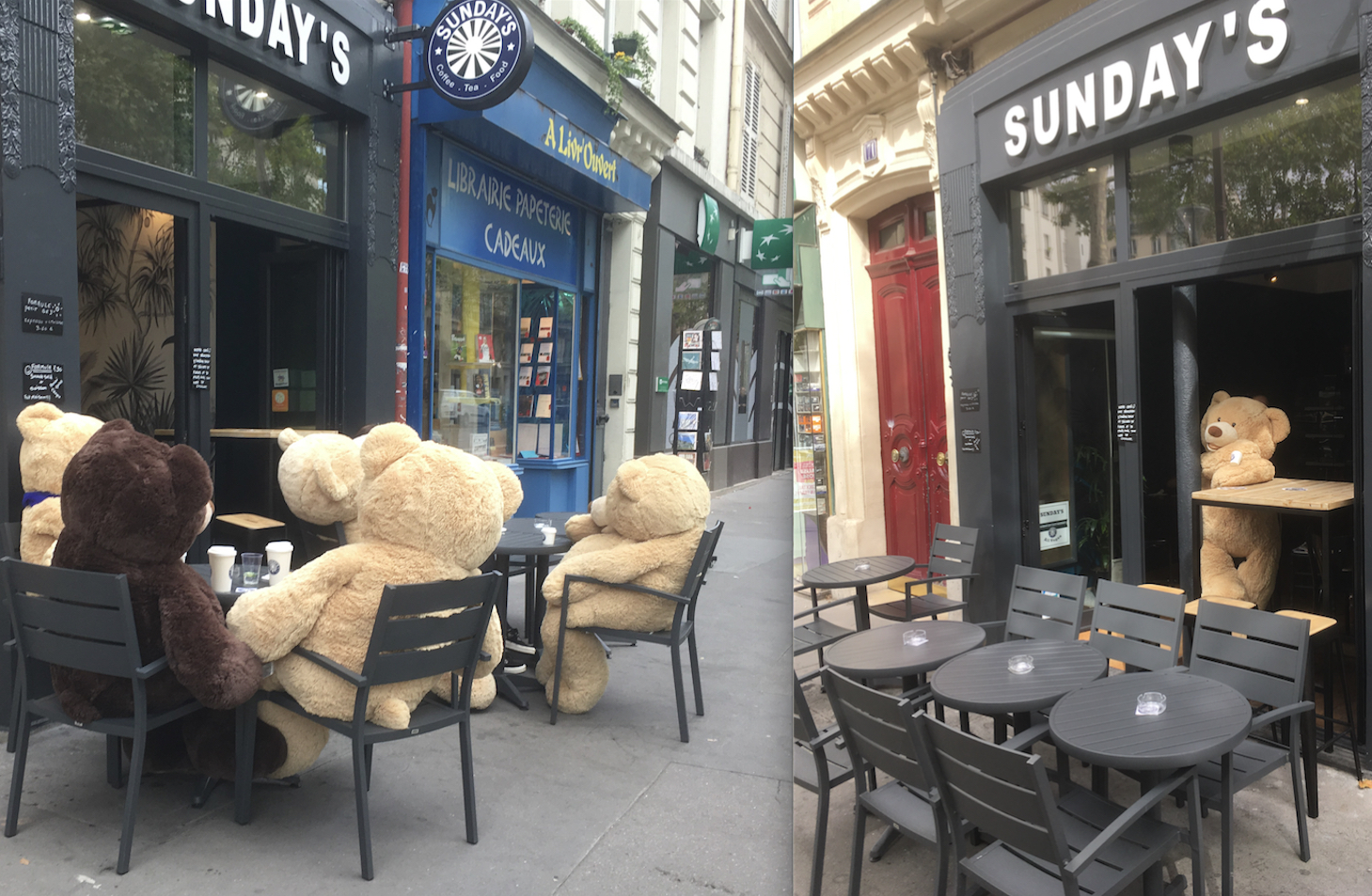 « When they’re all alone, we feel sorry for them. You immediately want to give them a cuddle and go and console them« , said my lovely friend Axelle, who confesses to a weakness for big, cuddly teddy bears. Of course, the lone bear can be endearing, but when they’re in a group, they quickly become invasive. That’s when it’s hard to find a seat on the terrace…