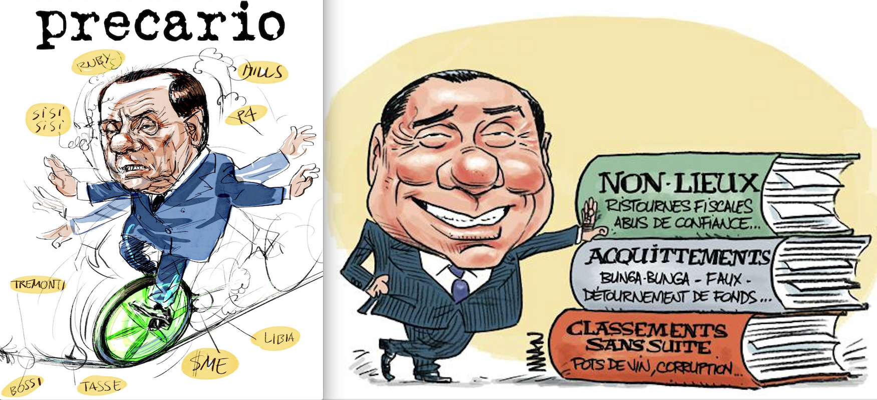 Que dire d’une personne qui a passé sa vie à mentir, à corrompre, à dégrader, à falsifier, à trahir, à intriguer, à pervertir, à arnaquer, à souiller tout ce qui ne servait pas ses propres intérêts ? Que dire d’un obsédé sexuel qui a recours à des prostituées mineures et à côté duquel DSK et Donald Trump font figure d’enfants de cœur ? Que dire d’un dirigeant politique qui laisse sa nation à la dérive tandis qu’il engraisse ses comptes bancaires au point de devenir l’homme le plus riche du pays ? Que dire de cette détestable incarnation du mâle et du mal italien, qui ronge une société en détruisant toutes ses valeurs humaines ? Que dire lorsque cette personne disparait ? Pas grand chose. Et même rien. C’est mieux ainsi. Que des individus de la même espèce, tels que le Russe Poutine ou le Hongrois Orban, lui rendent hommage en se déclarent ses amis de toujours est significatif. Que le pape François salue « son sens des responsabilités publiques et son tempérament énergique » est incompréhensible. Des sept péchés capitaux, il n’y en pas un que cet imposteur n’ait visité régulièrement ! Que l’Italie oublie la trentaine d’affaires en justice qui le concerne et décrète une journée de deuil national en hommage à celui qui l’a bafouée et ridiculisée durant tant d’années est pathétique. Aujourd’hui, la décadence romaine se déguste à la sauce milanaise.