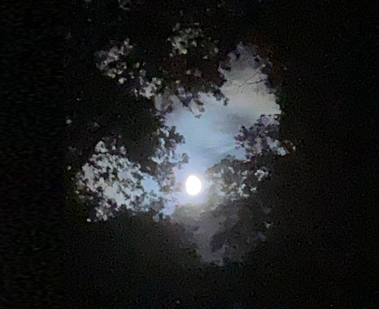 Plus que jamais, depuis quelques jours, seules comptent les nuits. Isolée en pleine nature, au cœur du Périgord noir, sans aucune pollution urbaine, je guette la pâleur sans cesse redécouverte d’une lune incomplète. Ses altérations prévisibles et ses apparitions imprévisibles la nimbent d’un mystère familier, dont elle est à la fois l’élément central et le décor théâtral. Réminiscence ancestrale, elle fait partie de nous avant même notre naissance. Son influence est permanente. Ici, entre nuages blafards et frondaisons obscures, elle sait jouer d’un double rideau d’artifices qui contraste les sentiments les plus variés et les plus intimes. On ne peut jamais prédire le rayonnement qu’elle prodigue, au propre comme au figuré. À chaque fois, je la laisse me porter, m’emporter, plus loin qu’elle ne le devrait. Je me retrouve là où l’on se perd. Et je ne sais plus qui de la nuit qui s’enfuit, ou du jour qui la renie, rend la lune encore plus fascinante et fragile.
