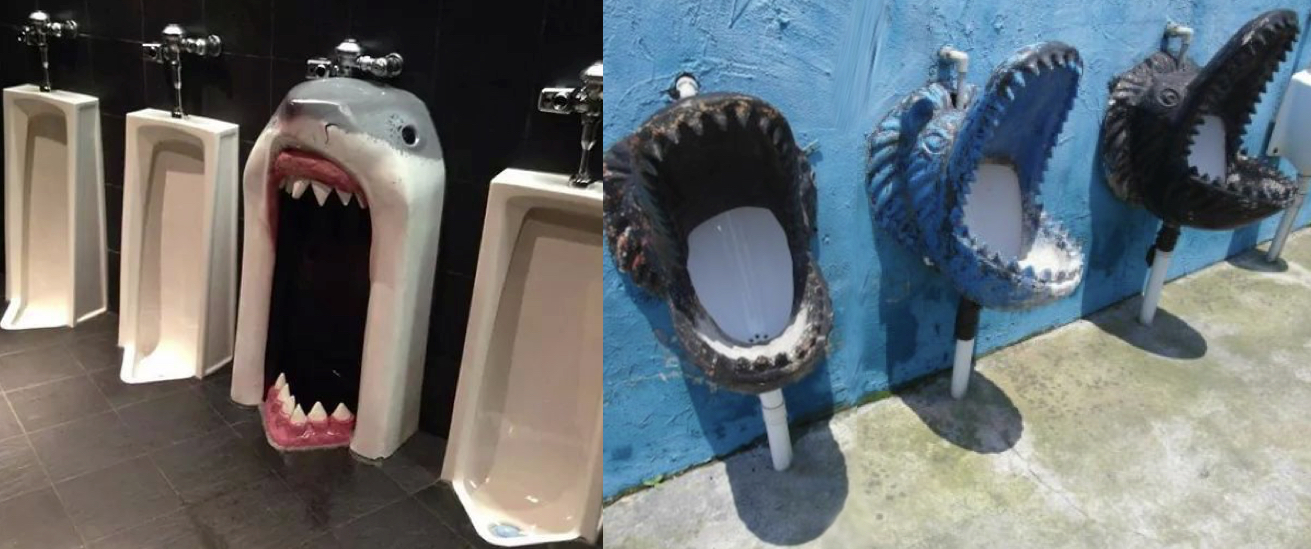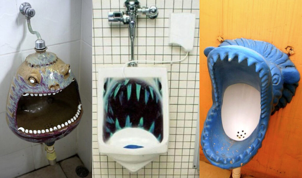 9 août 20239 août 2023 TOILETTES POUR HOMMES À VOUS COUPER L’ENVIE … Visiblement, certains concepteurs-décorateurs d’urinoirs publics ont cédé à quelques pulsions castratrices. À moins que ces idées et réalisations n’émanent plutôt de conceptrices-décoratrices… …