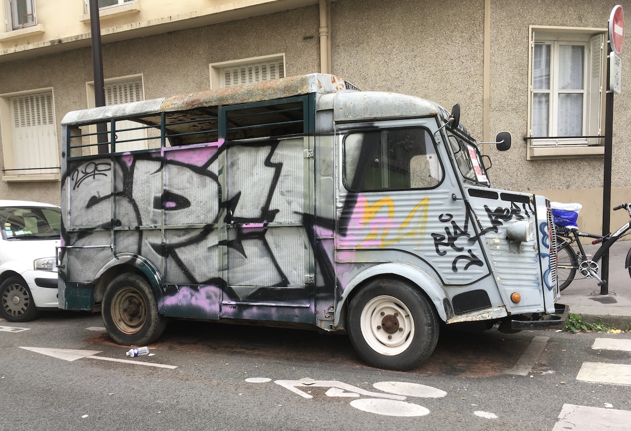 Les rues de Paris réservent parfois de bien belles surprises. L’une d’entre elles, dans le onzième arrondissement, a mis en exergue une œuvre d’art étonnante. Habituellement, lorsque l’on maquille un véhicule, c’est pour le rendre plus discret, ou moins suspect, quand il s’agit, par exemple, d’atténuer les doutes quant à son origine ou sa destination. Dans le cas présent, le relooking a été pensé dans une optique totalement différente. Les experts en peinture-carrosserie (probablement un atelier itinérant) n’ont pas fait dans la subtilité. Détail à souligner : ils ont tout de même eu la délicatesse d’apposer sur le pare-brise un écriteau “Peinture Fraîche” afin d’avertir le propriétaire, le conducteur ou les éventuels passagers de l’engin customisé. Les spécialistes pourront toutefois regretter, étant donné le modèle choisi, l’absence d’une dominante citron.
