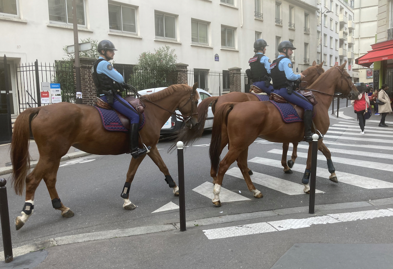 J’aime les surprises parisiennes, celles que l’on recherche lors de promenades dans la capitale, ou celles qui viennent à nous subrepticement, au gré du hasard, lors de déplacements quotidiens que l’on pensait tout à fait banals. Il y a quelques jours, marchant d’un pas rapide, je rejoignais mon domicile dans le onzième arrondissement. Soudain, en débouchant dans la rue Faidherbe, mes oreilles se dressèrent. Foin de sirène deux tons ou de vrombissements motorisés, un martèlement caractéristique me mit en alerte dans la seconde. Je tournai la tête. Trois magnifiques alezans venaient de faire leur apparition dans mon champ de vision. Comme la plupart des passants pressés, je stoppai net ma course citadine et me mis au garde à vous pour regarder passer le sublime équipage.