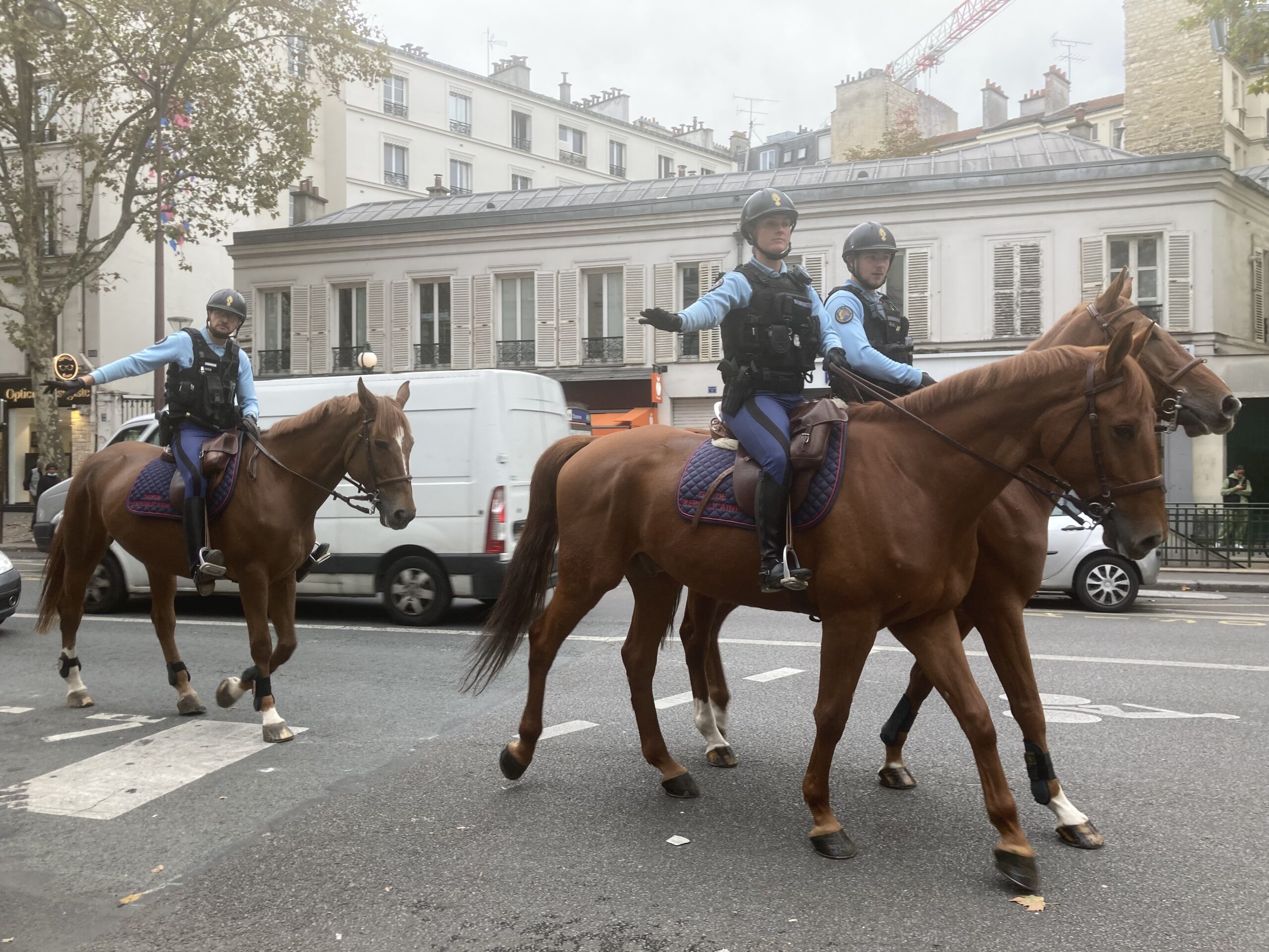 La petite escouade remonta une impasse et resta quelques minutes en faction non loin d’un établissement scolaire. Rarement, je vis une sortie des classes aussi joyeuse et admirative. Les parents compréhensifs acceptèrent de différer leur départ. Les autres eurent beau piaffer d’impatience, ils furent également contraints d’attendre le retrait de la cavalerie avant d’escorter leur progéniture jusqu’au bercail. Certains enfourchèrent leurs tricycles et leur vélos électriques, avec leurs enfants en croupe sur les porte-bagages aménagés. Durant quelques instants, ils suivirent, à distance respectable, les trois destriers. Derrière leurs trois superbes éclaireurs, ils formèrent ainsi une étrange caravane, accompagnée par les applaudissements des piétons. Des « Bravo la gendarmerie ! » et « Vive la Garde Républicaine ! » fusèrent sur leur passage. Au feu rouge, un motard releva la visière de son casque intégral et leva les deux pouces en l’air, hommage d’une cavalerie à une autre, tandis qu’un vieux monsieur retirait son chapeau en inclinant respectueusement la tête. Pour une fois, tout le monde était d’accord.
