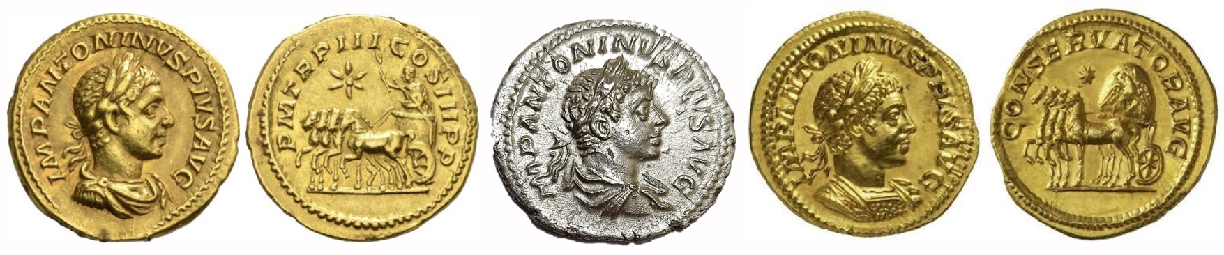 Dès le départ, il faut savoir jongler avec les dénominations pour ne pas perdre sa trace. Né en 203 ou 204 à Émèse, en Syrie, Varius Avitus Bassianus est le fils d’un sénateur romain et d’une princesse d’origine syrienne, apparentée à la dynastie des Sévères. Très jeune, il est dépositaire de la charge de grand-prêtre du dieu Élagabal, divinité solaire dont le culte ancien, remontant aux Phéniciens, est confirmé par des écrits et des pièces de monnaie du premier siècle de notre ère. Après l’assassinat du sanguinaire Caracalla, les femmes de la branche syrienne de la famille impériale manœuvrent habilement afin de proclamer Varius Avitus Bassianus empereur, sous le nom de Marcus Aurelius Antoninus. Pour faire bonne mesure, l’empereur Macrin, qui devait succéder à Caracalla, est exécuté, ainsi que son fils, et l’on apporte leurs têtes au jeune monarque qui, de Marcus Aurelius Antonius, devient Héliogabale. Le nouvel empereur a à peine 14 ans.
