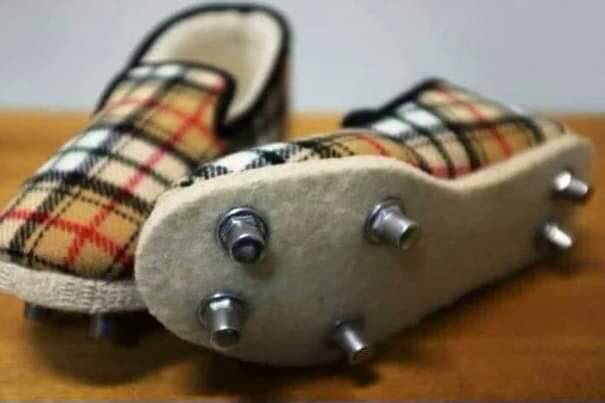 Pour tous les rugbymen à la retraite, ou pour les footballeurs bière-canapé, voici le cadeau de Noël véritablement idéal. Davantage appropriée lors des rencontres à domicile que pour les prolongations à l’extérieur, cette paire de crampons vissés vous permettra d’affronter n’importe quelle adversité au pied levé. Et, surtout, de relever n’importe quel défit physique d’arrache-pied.