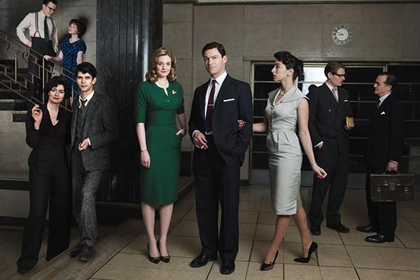 Sur fond de guerre froide, de censure gouvernementale, d’affaires d’espionnage, de crise du Canal de Suez et de répression soviétique en Hongrie, la première saison de la série, riche de six épisodes d’une heure chacun, oscille entre enquête journalistique, polar d’espionnage et chronique politique. Le rythme est haletant, les personnages attachants (qu’ils soient principaux ou secondaires), les rebondissements surprenants. L’ensemble est délicieusement addictif. Gare au binge-watching ! D’autant que la seconde saison, composée également de six épisodes, se poursuit par une enquête palpitante sur un réseau de vice et de corruption en plein cœur de Soho, célèbre quartier du West End londonien, niché dans l’arrondissement de la Cité de Westminster. L’ambiance bourdonnante d’une rédaction novatrice et le suspens caractéristique d’un thriller politico-historique se marient à merveille. Ce psychodrame élégant active des ressorts divers, parmi lesquels la position sociale et le statut de la femme dans une société patriarcale implacable. Tailleurs cintrés, robes de soirée, jupes entravées, bas nylon et talons aiguille le disputent aux smokings, boutons de manchette, costumes-cravates et pochettes de bon goût, sans jamais lâcher une once de terrain. Tantôt complices, tantôt antagonistes, les caractères féminins et masculins s’opposent ou s’allient dans un cocktail d’intrigues et de rivalités qui font aussi découvrir les coulisses d’un magazine d’information précurseur, cousin germain de l’émission française “Cinq Colonnes à la Une”, créé à la même époque et dont la première fut diffusée le 9 janvier 1959.