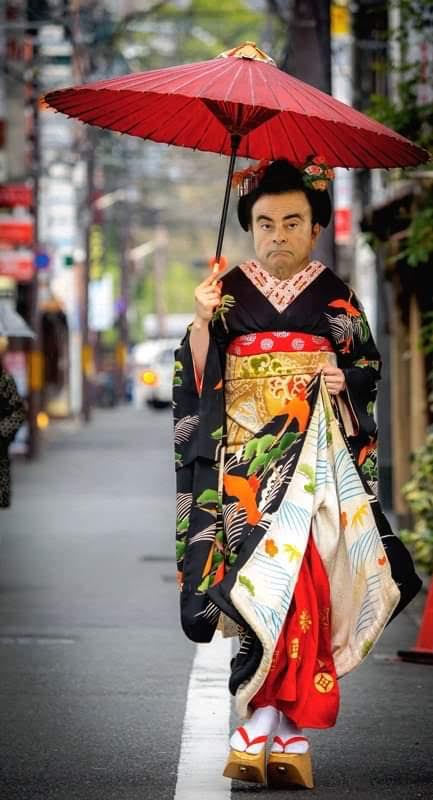 On a beaucoup supputé à propos des conditions d’évasion de Carlos Ghosn. Plusieurs hypothèses ont été avancées, tel le recours à une malle pour instrument de musique dans laquelle il se serait caché afin de quitter sa résidence surveillée. Pipo que tout cela. Photo à l’appui, nous vous dévoilons ici le stratagème qui a permis à l’homme d’affaires franco-libano-brésilien d’échapper à la justice japonaise. C’est en geisha qu’il a réussi à fausser compagnie incognito à ses geôliers nippons. Une escapade pour le moins risquée, qui lui a tout de même coûté la peau des fesses…