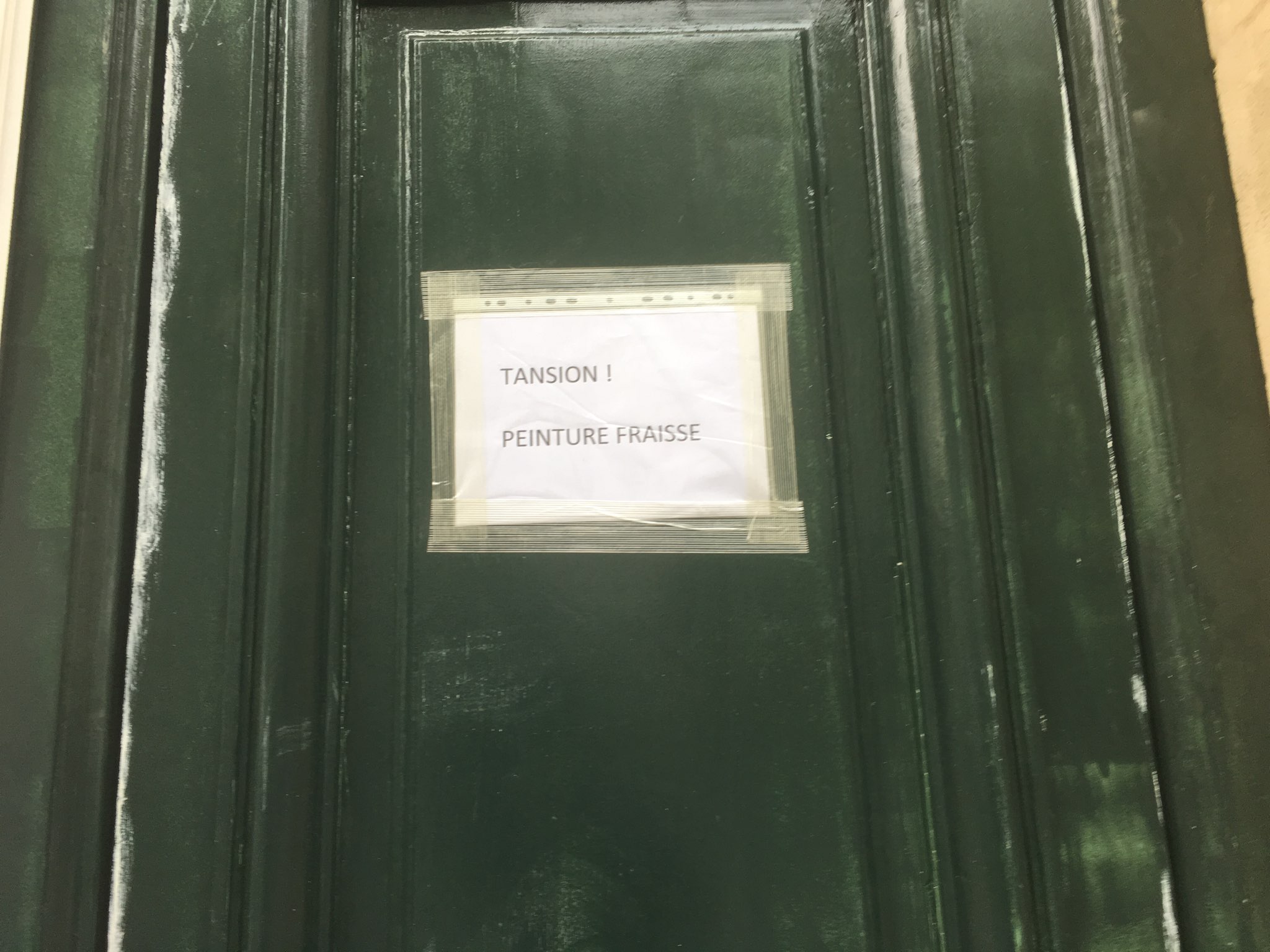 En me baladant sur un grand boulevard du 11ème arrondissement parisien, je tombe en arrêt devant une porte d’immeuble fraîchement repeinte. Le motif de mon arrêt n’est pas tant la porte en elle-même que l’écriteau qui y est apposé. Amusé de me voir prendre en photo l’objet du délire, un passant goguenard me souffle : « Une langue vivante est une langue qui évolue… » Je vérifie la définition sur wikiblabla : « Une langue est dite vivante lorsqu’elle a des locuteurs qui l’utilisent spontanément pour la communication interpersonnelle. Langue pour laquelle il existe des locuteurs natifs ». En l’occurrence, il s’agit d’une communication très personnelle de locuteurs particulièrement naïfs. Dans ce jeu de massacre, une question me vient aussitôt à l’esprit : par quel miracle le mot peinture a-t-il été épargné ? Je me demande aussi si, parfois, certaines langues vivantes ne préféreraient pas être mortes. Et rester figées à jamais dans leurs formes originelles.