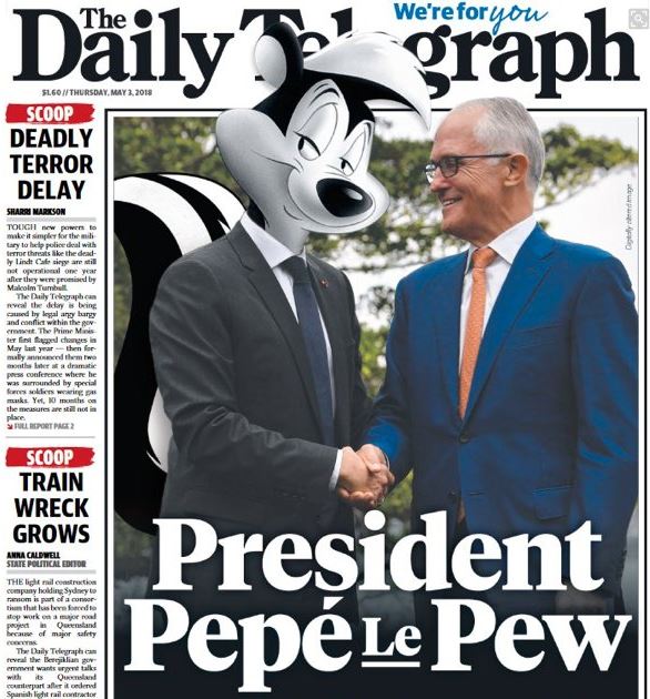 Habituellement, Emmanuel Macron a la réputation de plutôt bien manier la langue de Shakespeare. En Australie, il aurait dû tourner la sienne sept fois dans son museau avant de lui donner un accent plus que rabelaisien. Voulant remercier le premier ministre australien, Malcolm Turnbull, et son épouse Lucy pour leur accueil chaleureux, il a risqué un : « Thank you and your délicious wife for your warm welcome… » quelque peu malheureux. En effet, l’adjectif “delicious” employé ainsi est un faux ami. Il ne signifie pas, comme en français, “votre délicieuse épouse”, mais acquiert un autre sens, que l’on pourrait traduire par “votre femme est à croquer”, synonyme, en langage des cités de : “Wesh man ! Elle est trop bonne ta meuf !”. De quoi rendre vert de jalousie Donald et ses attrape-chattes. (suite…)