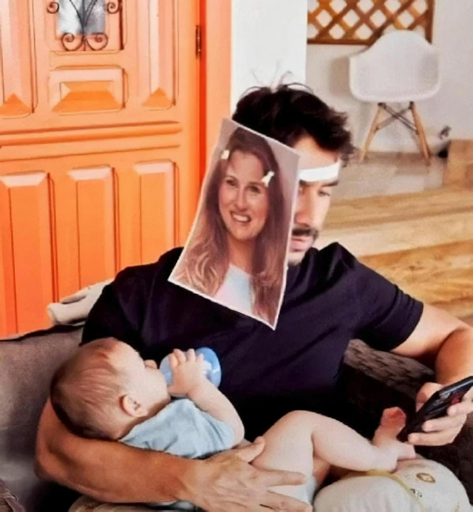 Vous n’avez pas la fibre maternelle. Vous supportez difficilement les pleurs de bébé et vous devez malgré tout assumer quelques tâches de père au foyer de temps à autre… Une astuce pour vous en tirer à bon compte tout en vaquant à votre téléphonie-mania ? Le face to face photoshopé ! Peu coûteux et facilement adaptable, ce procédé judicieux peut être utilisé avec succès en de nombreux lieux et circonstances. Attention : ne convient pas aux nourrissons de plus de 18 mois.
